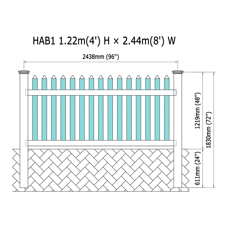 | Пикет | 7/8 "x 3" x 39 '' x 15pcs (стандартное расстояние) |