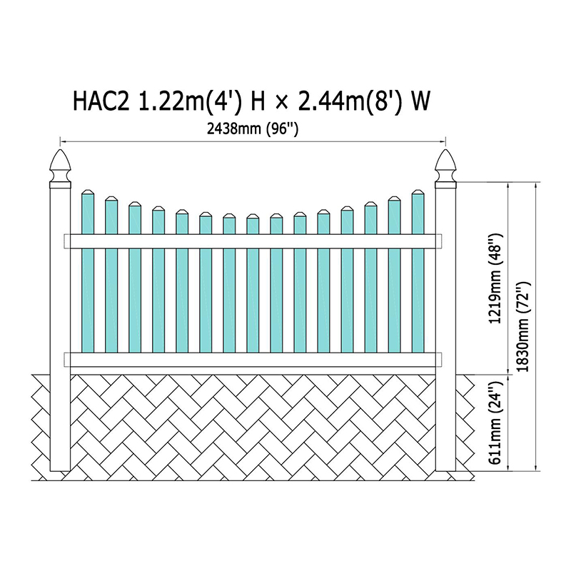 | Стиль верхнего забора | ПВХ 7/8 "x3" Пластиковый пикет |
